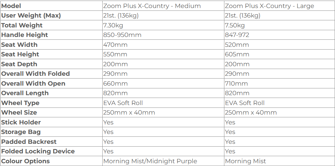 Published August 6, 2024 at 1084 × 539 in Zoom Plus X-Country Rollator – Please contact us for price, colours & availability
