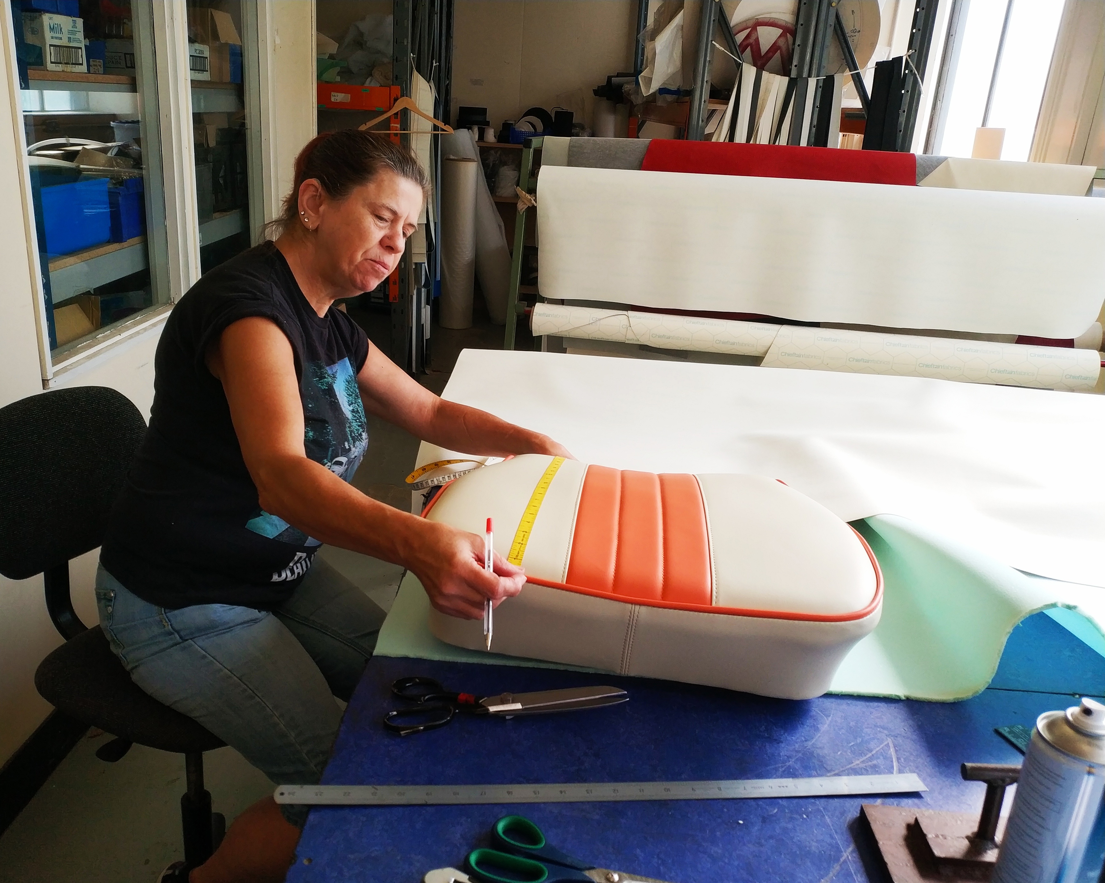 Marina – “I started working in the factory in 2005, initially producing wheelchair cushions and then got trained up to do bee-hive clothing with matching hats, which led on to nursing outfits and then large police tents. Drawing on this experience and my desire to learn, I went on to become an upholsterer and, to this day, really enjoy the variety of work and helping others with their training.”