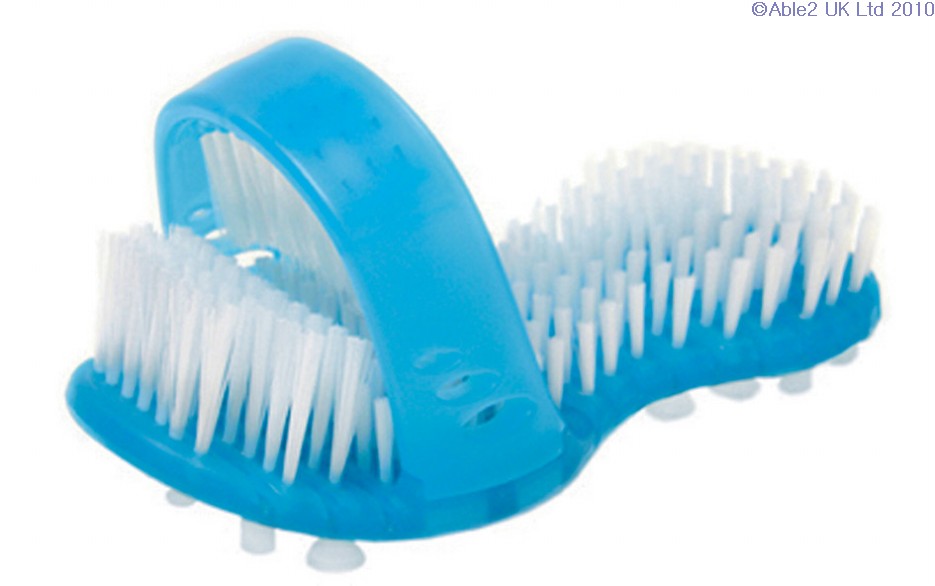 This shower sandal is lined with a multiplicity of flexible protrusions and having suction cups on the underside to secure the sandal to the shower. The sandal is sufficiently large that the foot of the user can be moved about within the sandal against the flexible protrusions to clean and massage the various areas of the foot.