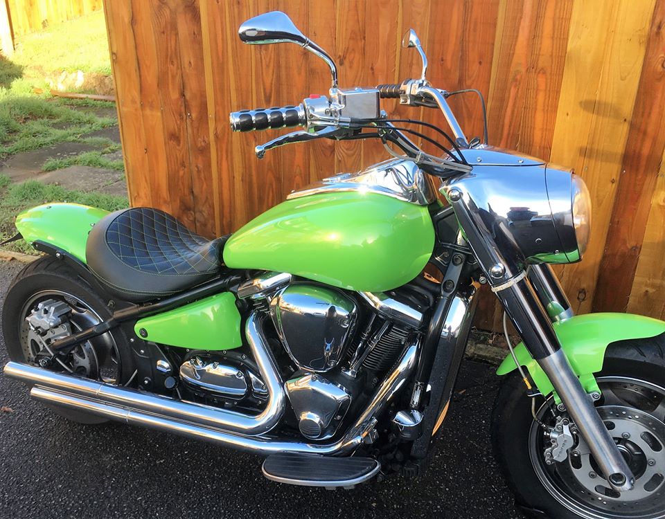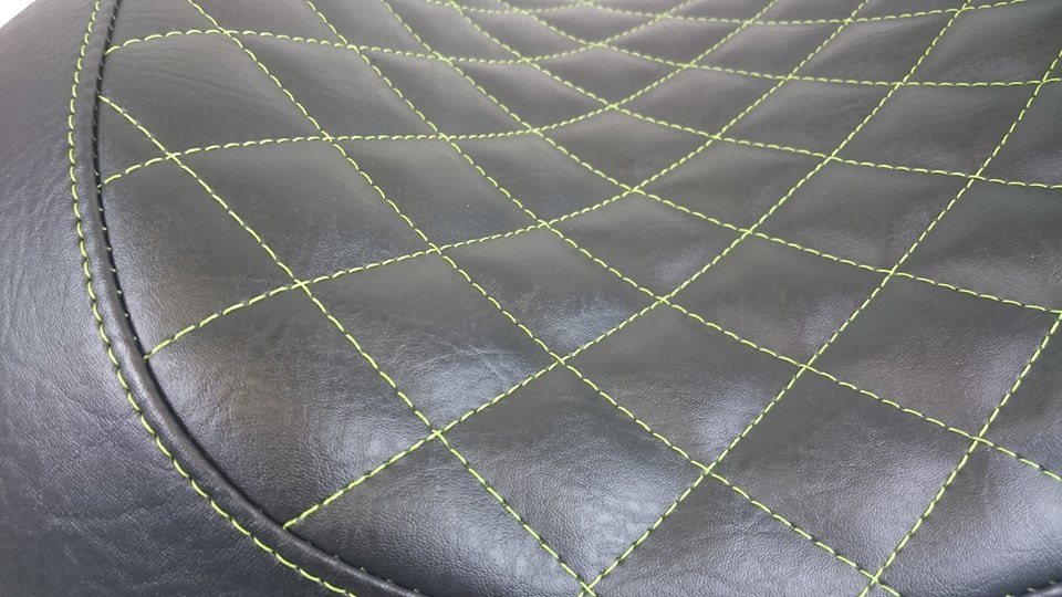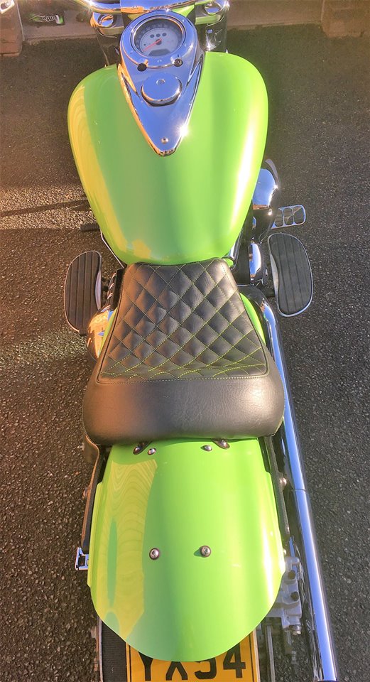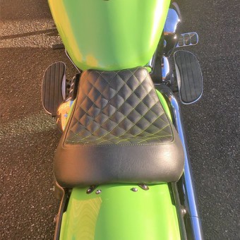 Excellent work on this stunning Kawasaki VN2000. Re-upholstered bike seat with diamond stitching by the DDC upholstery team. Bring on those dry summer days!